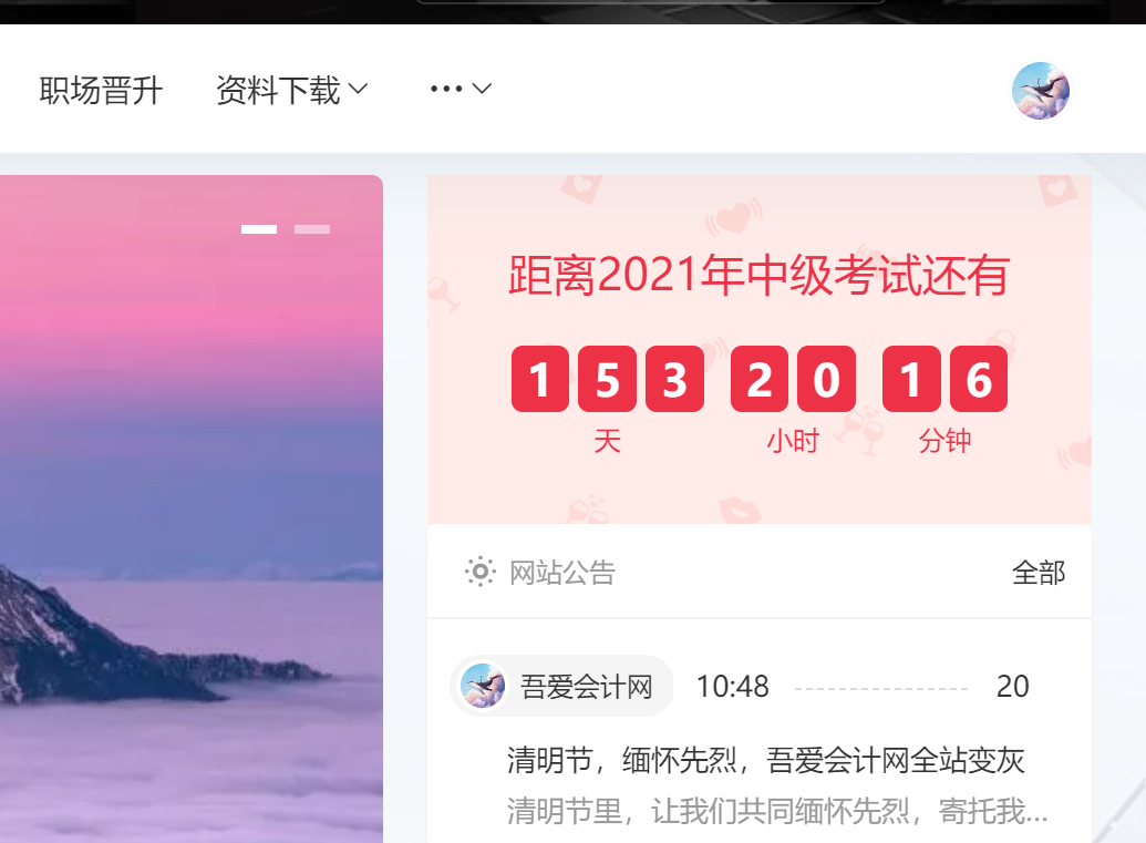 吾爱会计网首页添加考试倒计时提醒 20 4月04日 吾爱会计网管理员 取消关注 关注 私信 为了方便大家清楚地看到考试剩余时间,现在网站首页添加了倒计时提醒,希望能够为大家带来方便,以便合理安排考试时间。
